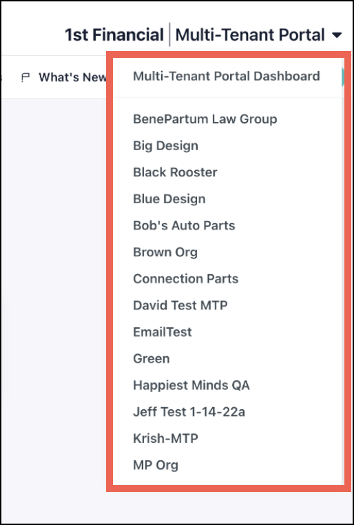 - After launching the Admin Portal for the managed org, click the Multi-Tenant Portal dropdown menu in the top right corner, then click a managed org's name. The JumpCloud Admin Portal for the selected org redirects in your current browser window.