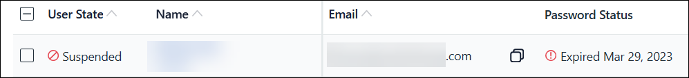 JumpCloud has password status indicators that show the current password status of the users in your organization, so that you can make changes as necessary. The password statuses are: