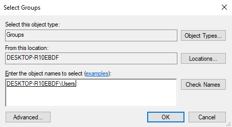 - In the next menu, enter “Users”, then click Check Names.