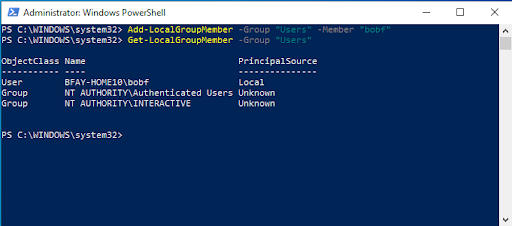 - To add the newly re-enabled user to the Local Users group, run the following command: Add-LocalGroupMember - Group "Users" -Member "Username_goes_here"