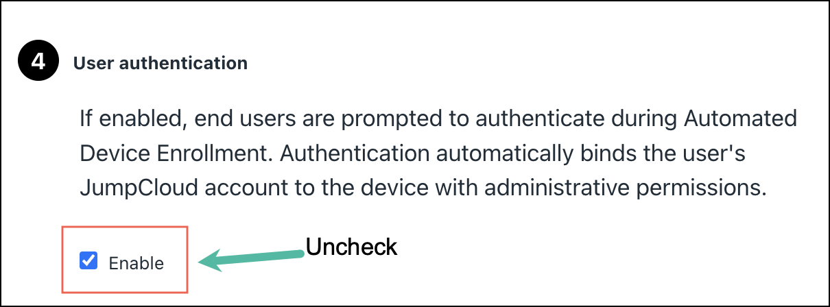 - (Optional) If you leverage Mac Zero-Touch Experience, temporarily disable User Authentication in the Zero-Touch Experience settings.
