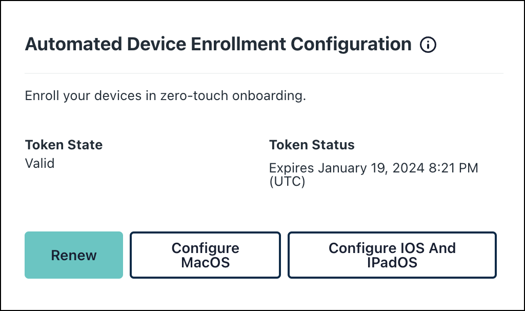 - In the Automated Device Enrollment Configuration section, click Configure MacOS. The Mac Zero-Touch Experience screen displays.