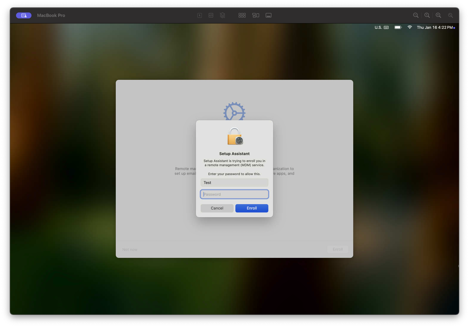 - Enter an administrator password and click Enroll to allow the enrollment installation to proceed.