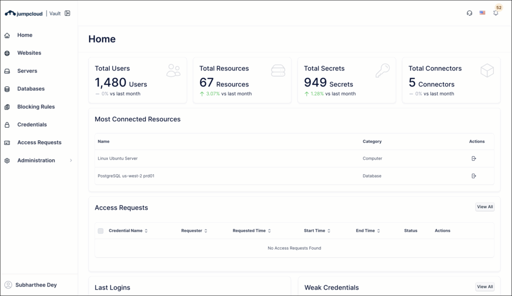 The JumpCloud Vault platform is now deployed within the JumpCloud India AWS account, establishing a fully supported, localized data center region. This foundation provides Indian customers with secure credential management and privileged access tailored to their regional needs.