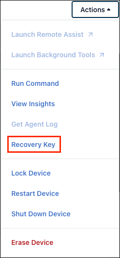 - From the dropdown, select Recovery Key.