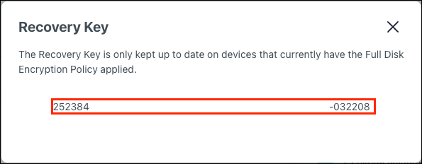 You can view BitLocker Recovery Keys from both the Devices and Policy Management areas in the Admin Portal. You can obtain the recovery key for a single device, or multiple devices.