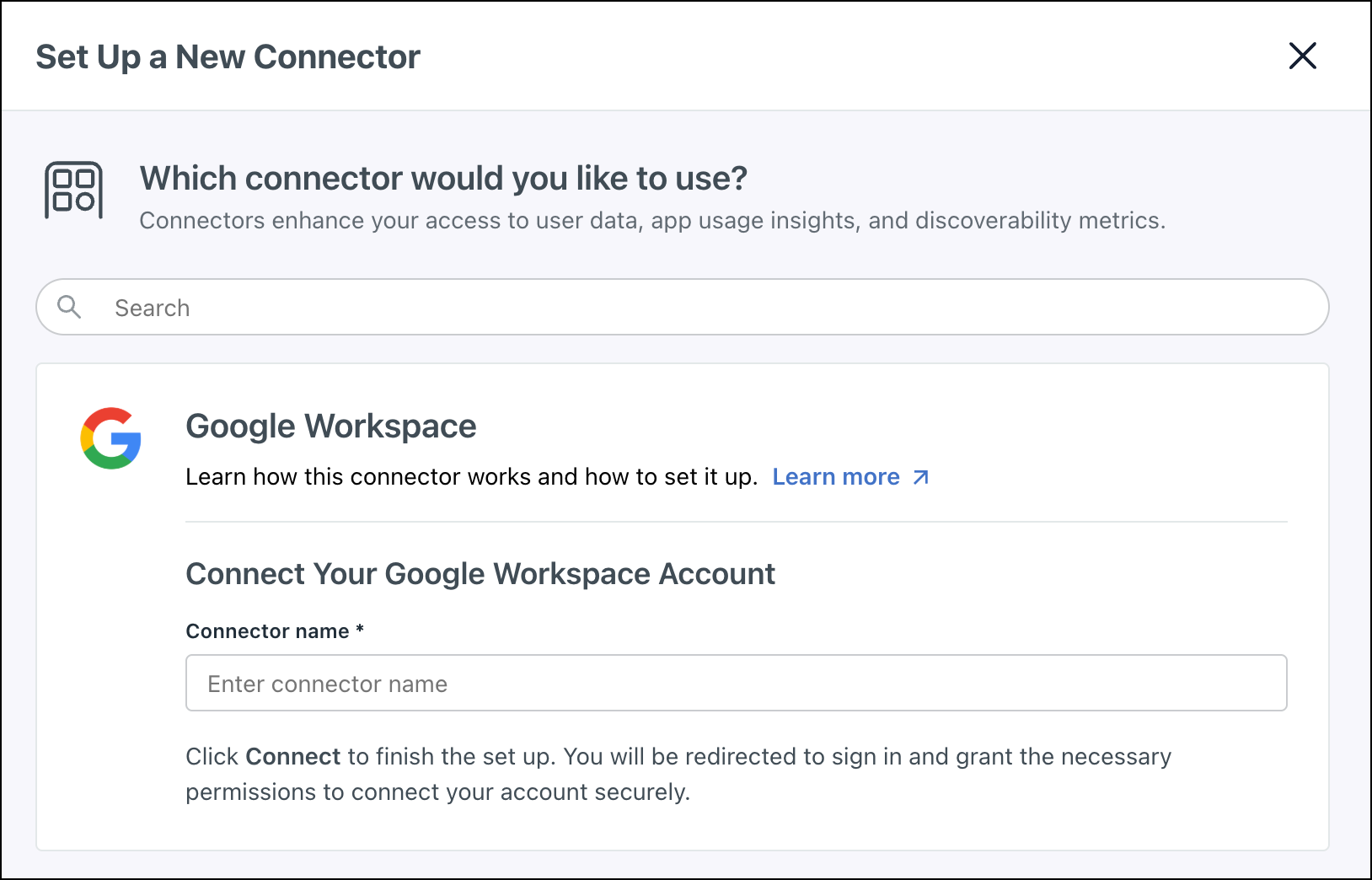 - Google Workspace is added to your list of Connectors.