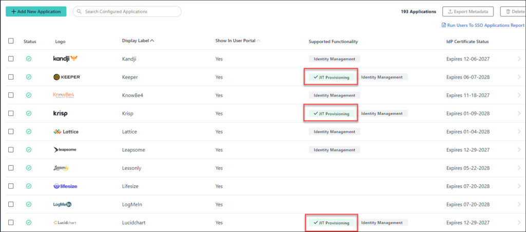 JIT provisioning lets you automate user provisioning to SSO applications, giving you more time to focus on higher value projects. End users also benefit by gaining faster access to the SSO applications they need to do their jobs.