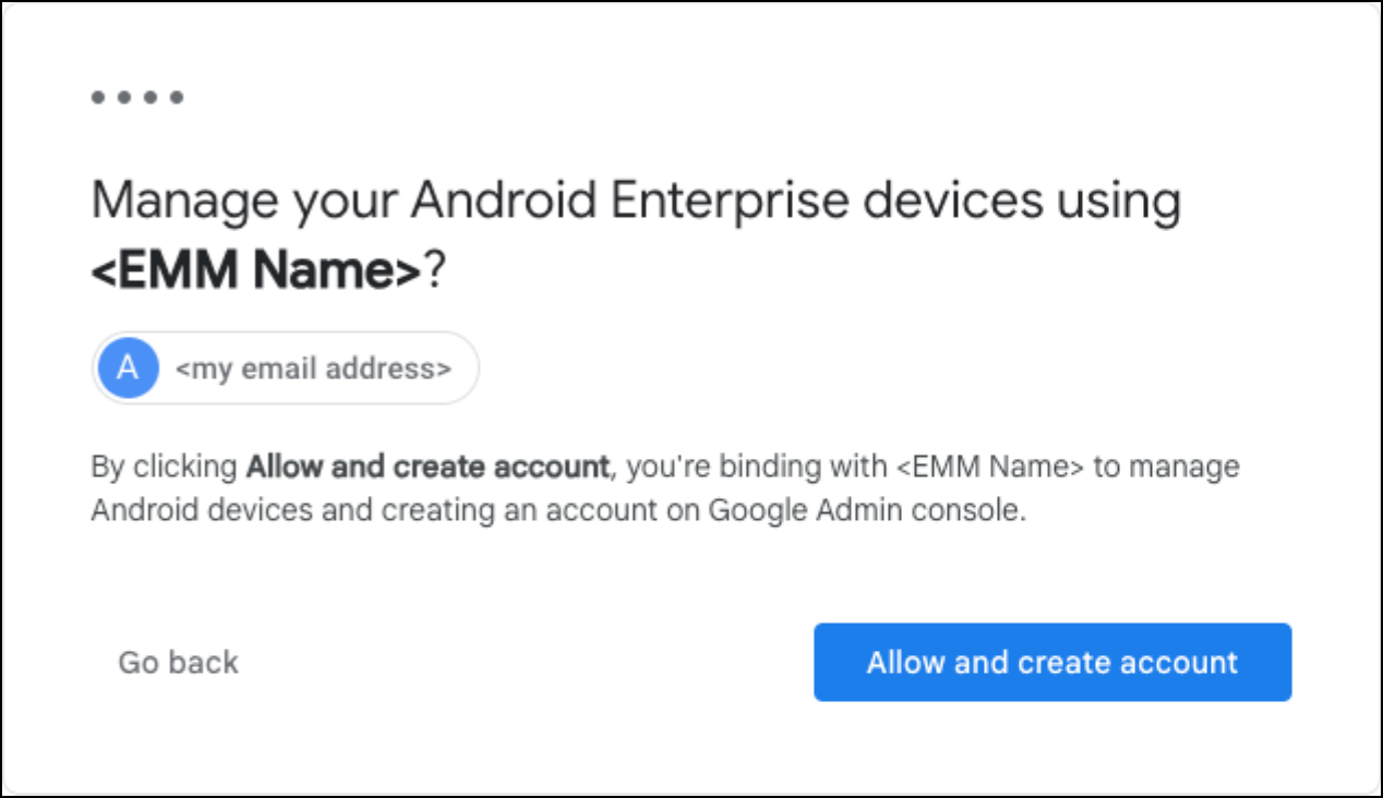 - Click Allow and create account to confirm that you want to bind your org to Android Enterprise and create your account on the Google Admin console.