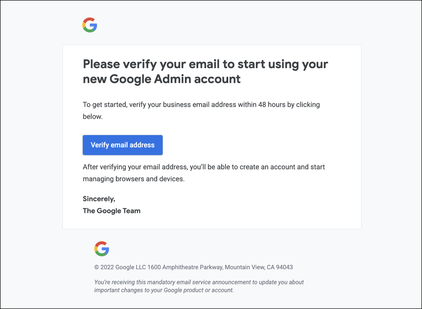 - You will receive an email to the address entered above to verify your account. In the email, click Verify email address.