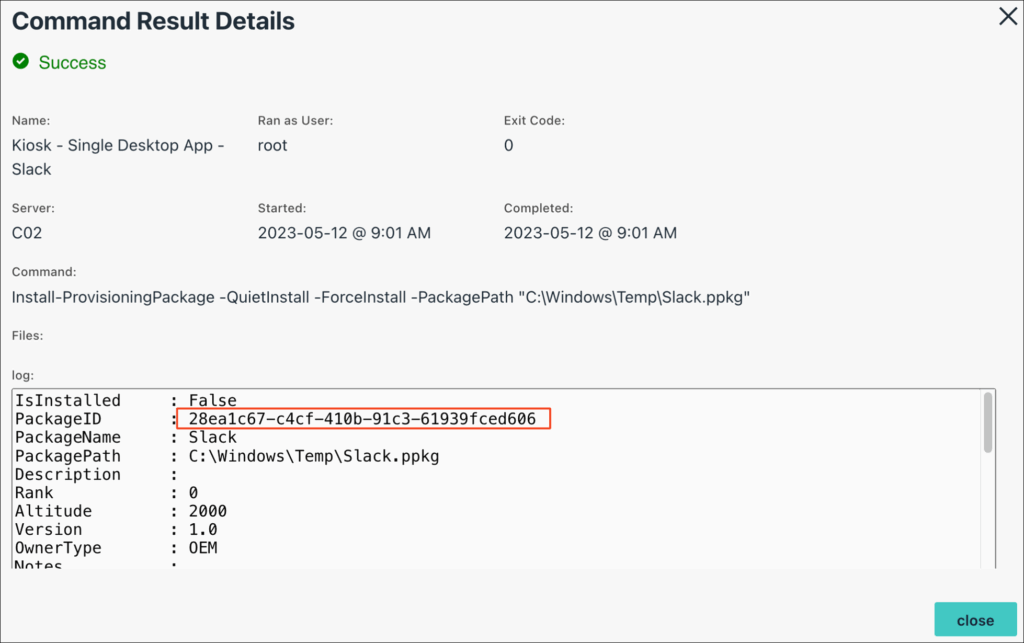 Install-ProvisioningPackage -QuietInstall -ForceInstall -PackagePath "C:\Windows\Temp\Slack.ppkg"