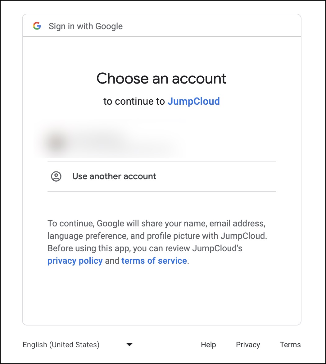 - When your account is connected, click Sign in with Google on the JumpCloud Administrator login screen to sign in using your Google credentials.