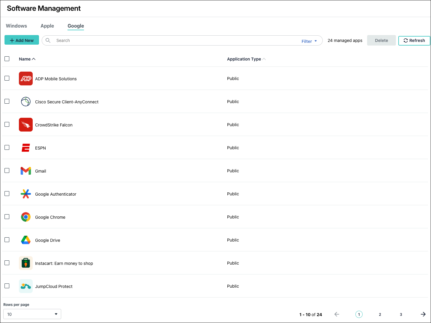 - Go to DEVICE MANAGEMENT > Software Management, then select the Google tab.
