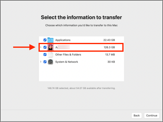 If your environment requires using Migration Assistant, proceed at your own risk. Select only the user home directory during the Migration Assistant wizard (as highlighted in the following image). Do not migrate Applications, Other Files & Folders, or System & Network Settings and ensure these are deselected during the Migration Assistant process.