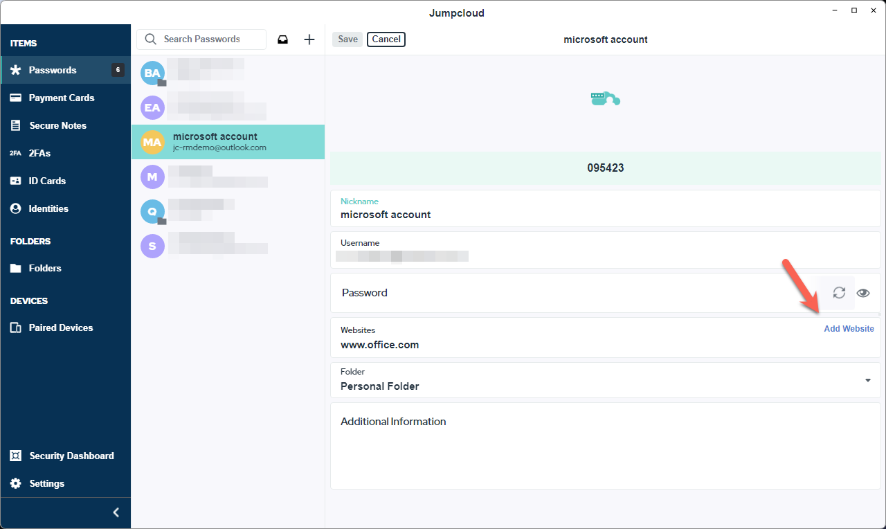 If you have an account that is used with multiple website domains (i.e. office.com and outlook.com), you can add the additional website domain to your password entry:
