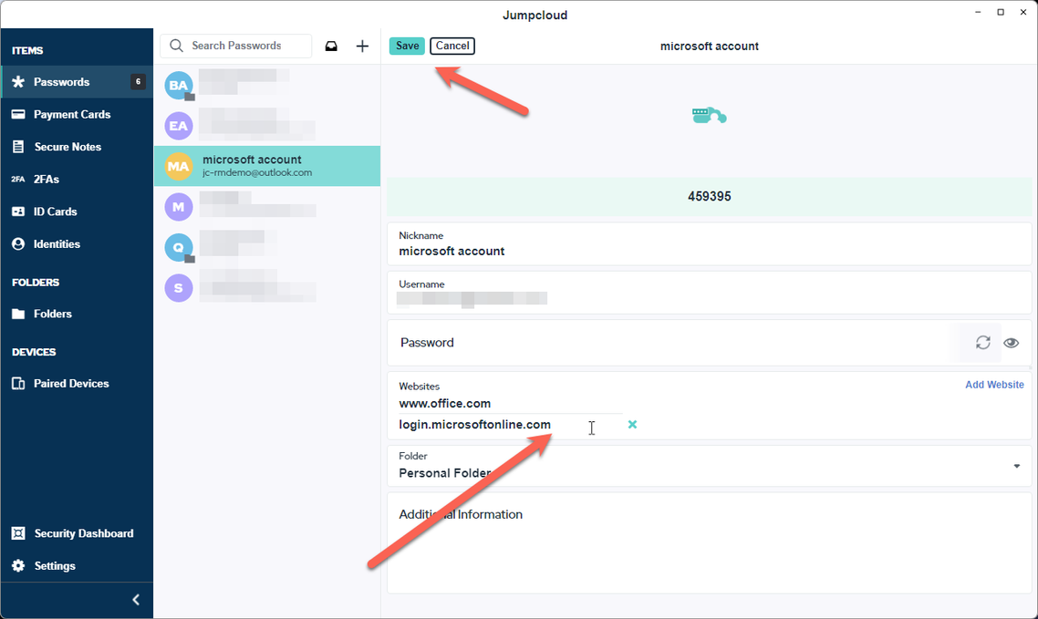 - Correct the issue by editing the website domain to the correct website domain on the password entry in the JumpCloud Password Manager App.