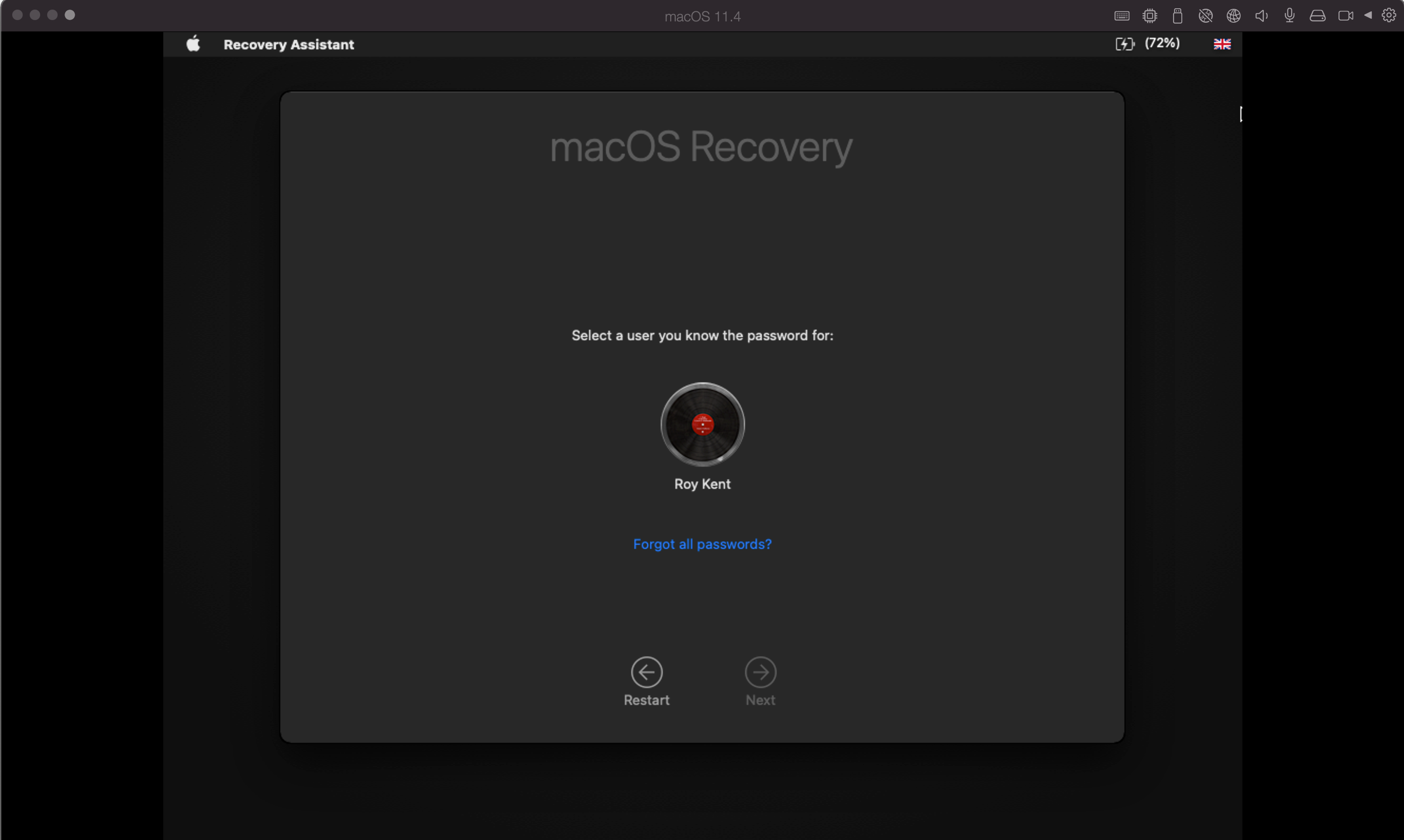 Tip: If you just have one account on the Mac (which is likely if you find yourself in this scenario), the account should automatically be selected.