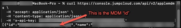 - In the macOS Terminal, insert your API key into the command below and run it to gather your MDM ID: