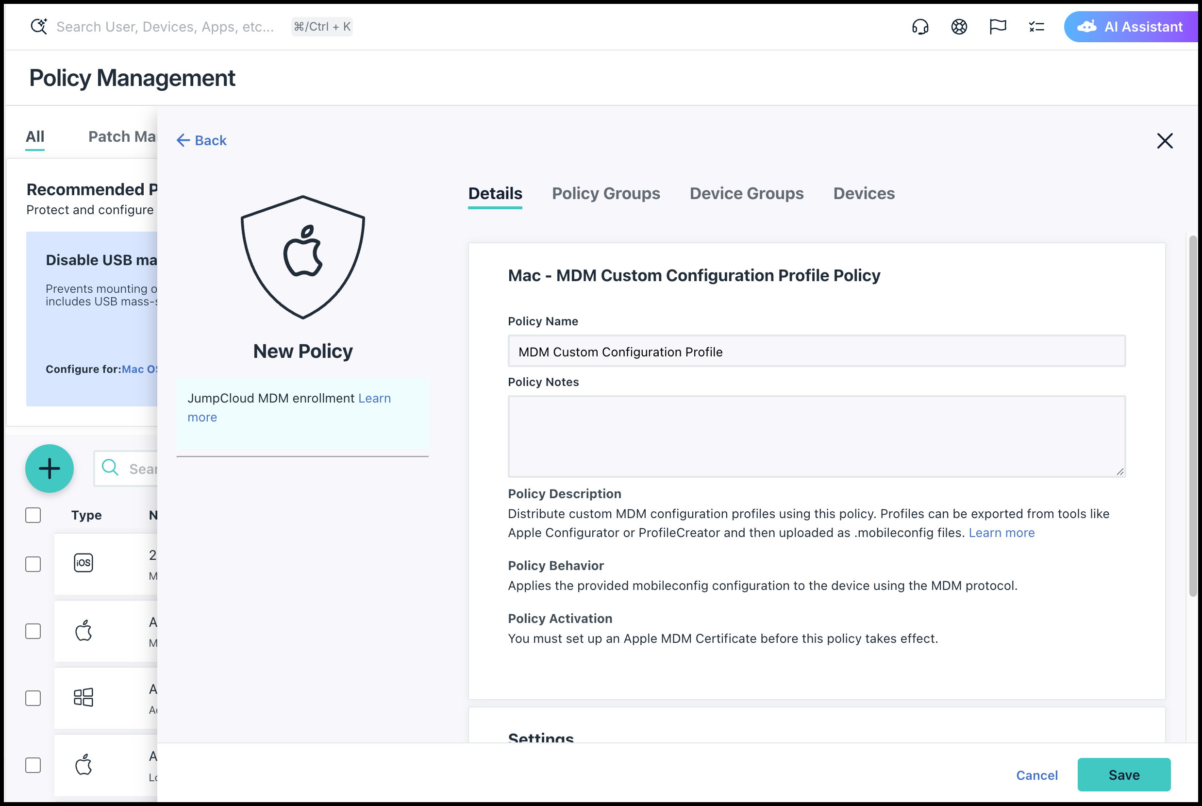 - The profile can be uploaded to the MDM of your choice, JumpCloud or otherwise.