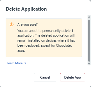 If you no longer want to manage an app through JumpCloud, you can remove it. Removing an app managed by the JumpCloud App Catalog does not remove the app from devices where the app is bound; the app will no longer be managed by JumpCloud.