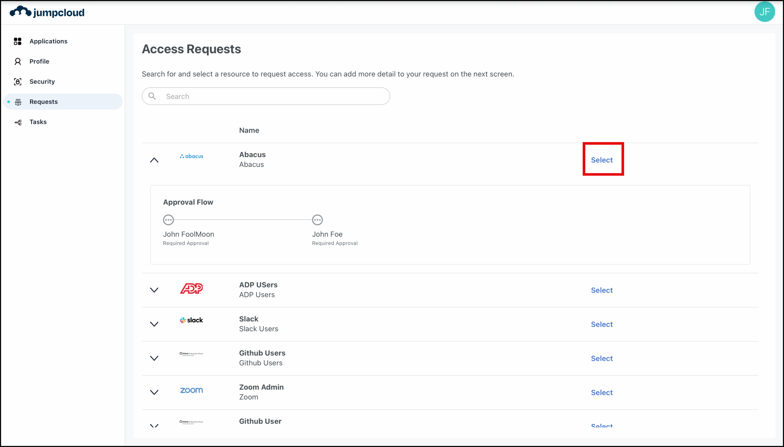 To approve or deny resource requests in JumpCloud, an admin must add you to an approval flow as an assigned approver.