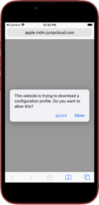 - On your device, tap Allow to download the enrollment profile and follow the instructions on your device. If you are unable to scan the QR code or the URL did not pop up on your device, tap Direct Link under the QR code to link directly to the URL.