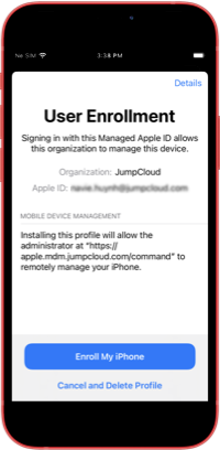 To begin, your IT Admin will configure your account in the JumpCloud Admin Portal, which lets you enroll your device. The admin will also provide you with a Managed Apple Account (Managed Apple ID, or MAID) to establish your identity when you use your device to access JumpCloud resources.
