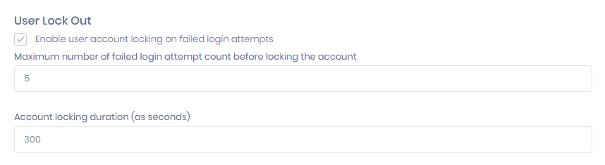 - Locate the following options for configuring login attempt limits and lockout duration.