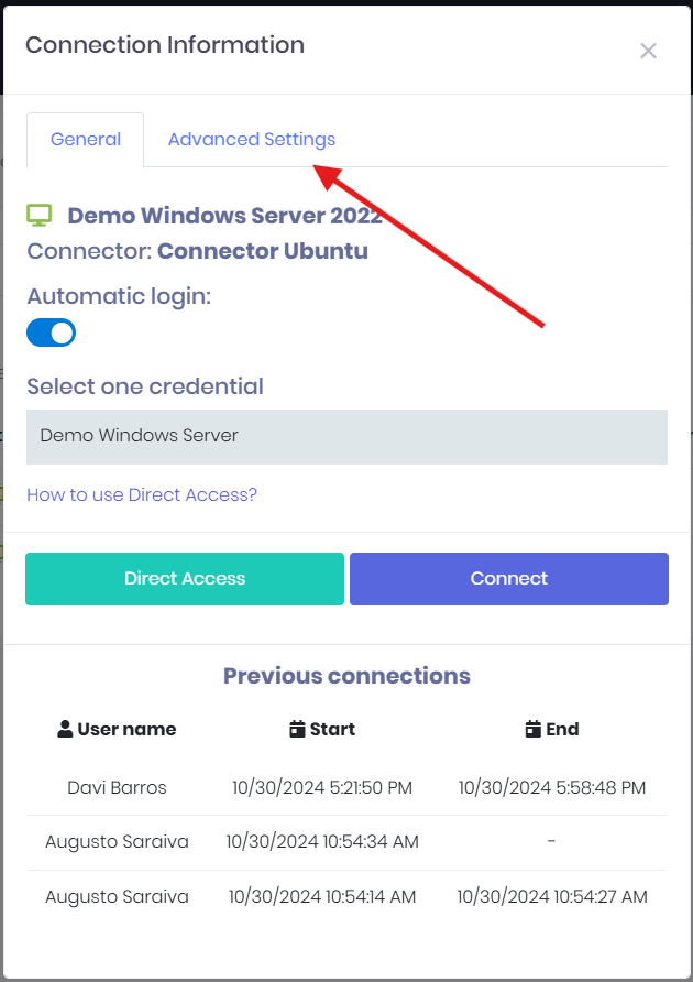 Vault allows you to use multiple monitors when connecting directly to a server using the RDP client. Before proceeding, ensure that both the platform and the host machine are configured for Direct Access connections.