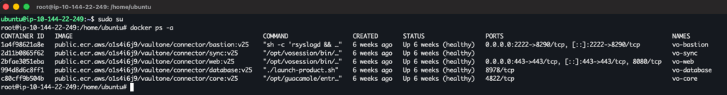 docker ps -acommand to verify if all containers are up and healthy.