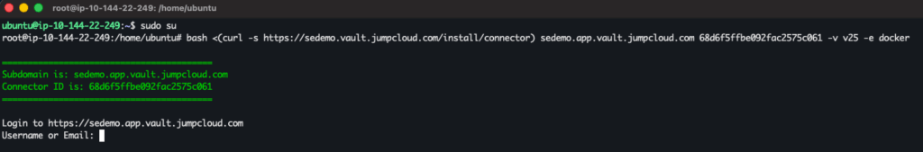 sudo sucommand. - After being the root user, paste the command from the platform. This requires an authentication from a local VaultOne user.