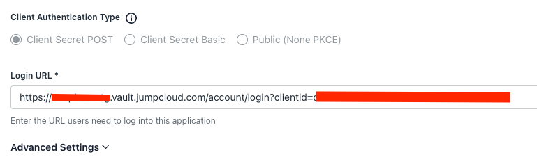 - Redirect URI - enter the full JumpCloud Vault login URL (ex. https://<YOUR-VAULT-NAME>.vault.jc-proxy.apps.a-demo.org/account/login)