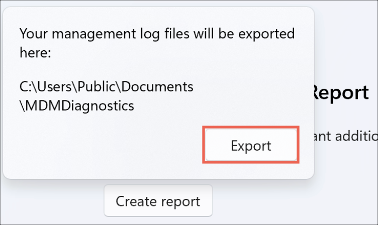 Creating an MDM Diagnostics Log Report