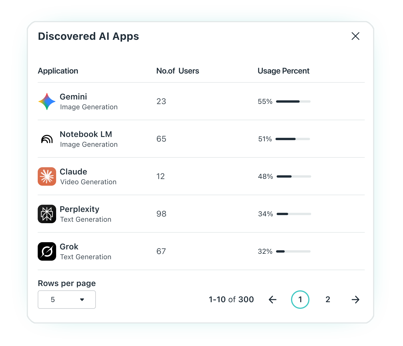 Instantly discover, track, and report on unapproved shadow AI apps and usage across your organization.